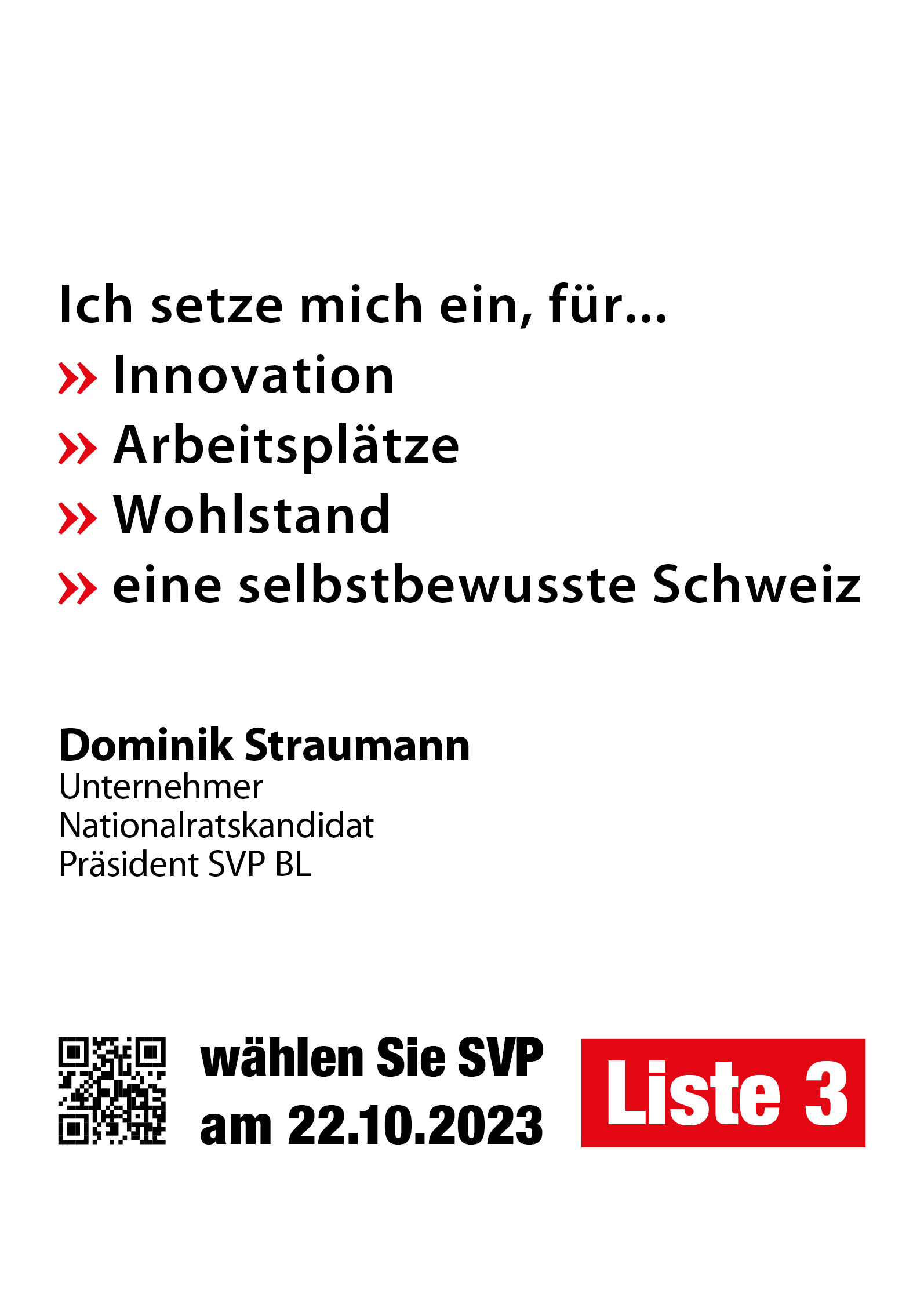 Unterstützung für "Dominik Straumann in den Nationalrat"